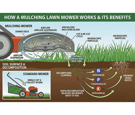 - Collection or mulching of clippings for a neat finish